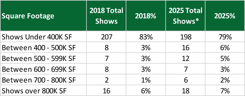 Only 17% of the top 250 trade shows require over 400,000 square feet of space each year